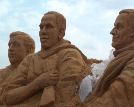 Moskova’da düzenlenen “Büyük Roma İmparatorluğu” başlıklı heykel sergisinde Rusya Devlet Başkanı Dmitri Medvedev ve ABD Başkanı Barack Obama’nın kumdan yapılmış heykelleri büyük ilgi gördü. Kum üzerinde yapılan eserde Medvedev, Obama ve başka dünya liderleri eski Roma dönemi giysileri ile “Roma Senatosu”na katılıyor.