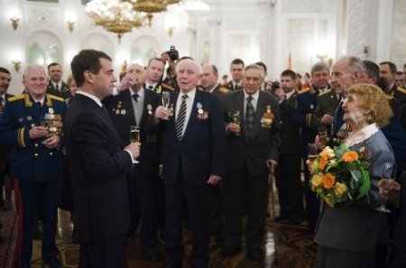 Kremlin'de İkinci Dünya Savaşı gazileriyle buluşan Medvedev, cephede gösterdikleri kahramanlıklarından dolayı kendilerine şükranlarını sundu. Rusya Devlet Başkanı, savaş yıllarına ait ödül ve madalya listesini büyük heyecanla izlediğini itiraf ederek, "Bu kahramanlık sayesinde büyük zafer bizim oldu." dedi.