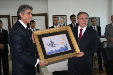 Konuşmaların ardından Belediye Başkanı tarafından Şahin'e ebru sanatıyla yapılmış tuğra tablosu hediye edildi.