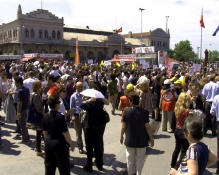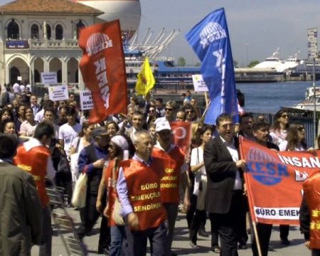 İstanbul’un Anadolu yakasında grev kararına uyarak bir günlük iş bırakan memurlar, Kadıköy İskele Meydanı’nda buluştu.