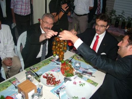 Vali Celalettin Cerrah ve beraberindeki heyetle Kadirli'nin Azaplı Köyünde Dizayn gurubuna ait domates serasını gezen Milletvekili Tüzmen, suda domates yetişmesinin çok ilginç bir uygulama olduğunu söyledi.