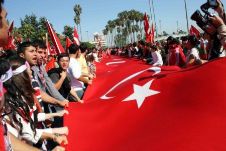 Mersin’de sosyal paylaşım sitesi aracılığıyla toplanan binlerce kişi terörü protesto etti.