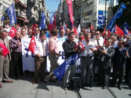 Türkiye Kamu-Sen üyesi yaklaşık yüz kişilik grup, öğretmenlerin kaçırılmasını protesto etmek için Beyoğlu’nda eylem yaptı. Taksim meydanında toplanan grup, ellerinde Türk bayraklarıyla İstiklal Caddesi üzerinde yürüyüşe geçti. Grup yürüyüş boyunca ‘Hükümet uyuma öğretmenine sahip çık’, ‘PKK bizi yıldıramaz’, ‘Açılım açılım işte size açılım’, ‘Öğretmene kalkan eller kırılsın’, ‘Vatan sana canım feda’, ‘Kahrolsun PKK işbirlikçi ABD’ şeklinde sloganlar attı.
