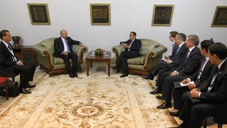 Kazakistan'ın başkenti Astana'da düzenlenen AGİT Yüksek Düzeyli Hoşgörü ve Ayrım Gözetmeme Konferansı'na katılan AKPM Başkanı Mevlüt Çavuşoğlu, Kazakistan Dışişleri Bakanı ve AGİT Dönem Başkanı Kanat Saudabayev ile görüştü.