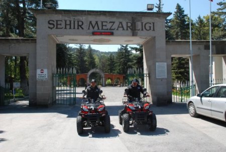 Kayseri Büyükşehir Belediyesi'ne ait mezarlıklarda güvenlik hizmetlerini daha kaliteli ve hızlı yapabilmek amacıyla ATV'li güvenlik ekibi oluşturuldu. Özellikle mezarlık ziyaretlerinin yoğun olduğu özel günlerde asayiş ile ilgili yaşanan sorunlara daha hızlı müdahale edebilmek ve mezarlıklarda güvenliği en üst düzeyde sağlayabilmek için 2 adet ATV motosiklet alınarak motorize güvenlik ekibi kuruldu. İlk olarak şehir mezarlığında oluşturulan ATV'li güvenlik ekiplerinin zamanla diğer mezarlıklarda da yaygınlaştırılması planlanıyor.