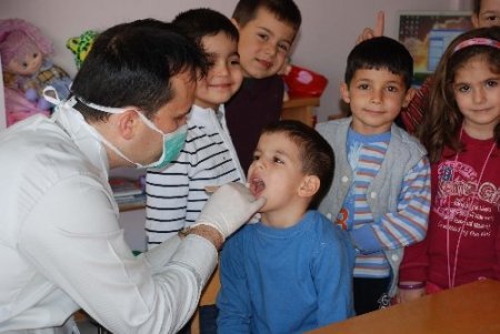 Akdeniz Üniversitesi (AÜ) öğretim üyeleri, Toros Akdeniz Koleji Anaokulu’nun öğrencilerini diş taramasından geçirdi.