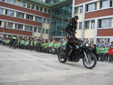 Daha sonra bahçeye çıkartılan öğrencilere polis araçları; motosikletler ve otomobiller hakkında bilgi verildi. Yunus polislerinin motosikletlerle yaptığı gösteriyi izleyen minik öğrenciler, polis ablaları ve amcaları tarafından motosikletlere bindirildi. CİHAN