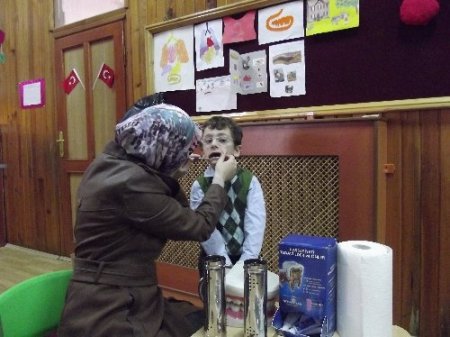 Düzce Özel Yunusbey İlköğretim Okulu ana sınıfı öğrencileri, diş sağlığının öneminin anlaşılabilmesi için uygulamalı olarak diş taramasından geçirildi.