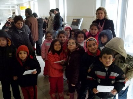 Balıkesir'in Akçay ilçesinde minik öğrenciler kendi hazırladıkları tebrik kartlarını yakınlarına gönderdi.
