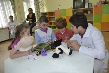 Çocukların doktor korkusunu yenmeleri için hekim adayları harekete geçti. Uludağ Üniversitesi miniklerin doktor korkularını minik ayılarını beraber iyileştirerek yendi.