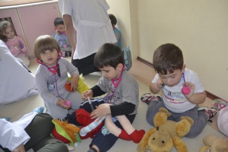 Uludağ Üniversitesi Anaokulu ve Kreşi'nde gerçekleştirilen etkinlikte, 3 ile 7 yaş arası çocuklara insan vücuduyla ilgili temel bilgiler vererek eğlendirici ve öğretici bir şekilde doktor ve hastanenin ürkütücü olmadığı gösterildi.
