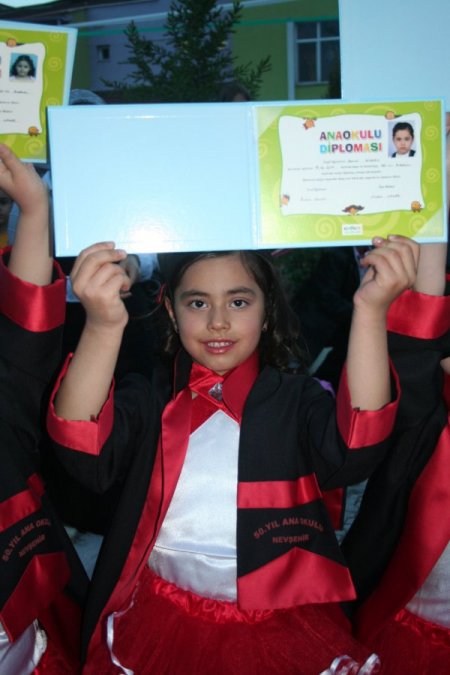 Minikler, gösterilerinin ardından diplomalarını tek tek isim okunarak Okul Müdürü Murat Çakar’ın elinden aldı. Minikler sevinçlerini toplu olarak kep fırlatarak gösterdi. Diploma töreni sonrasında yapılan ateş gösterisi de beğeni ile izlendi. Tören öğrencilerin öğretmenleri, velileri ve arkadaşları ile çektirdikleri fotoğrafların ardından sona erdi.