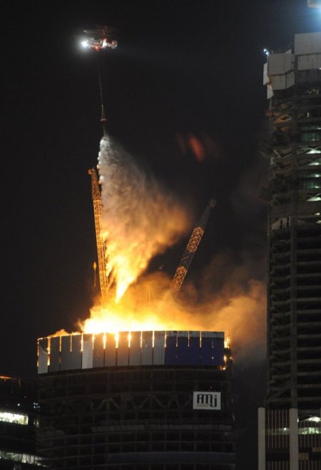 Tamamlandığında 360 metre olacak olan 250 metre yüksekliğindeki inşaatta çıkan yangın itfaiyenin işini zorlaştırdı. 10 kilometre mesafeden görülen yangının büyümesinden endişe eden yetkililer geniş bir alanı güvenlik çemberine aldı. İnşaatı devam eden binanın ilk 10 katında ve 29. katta bazı ofisler kullanıma açılmıştı. CİHAN
