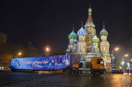 Mojaik bölgesinden kesilerek getirilen 103 yaşında ve 28 metre uzunluğundaki dev çam ağacı Kremlin'e Spaski kapısından dev TIR'la giriş yaptı. Geleneksel olarak Katedral Meydanı'na dikilen ağacın süslemelerine başlandı. Kremlin uzmanları uzun süren araştırmaların sonunda hangi ağacın kesilerek Kremlin'e getirileceğine karar veriyor. 18 Aralık'ta kesilen ağaç paket yapıldı, dev TIR'la polis kortejinde Kremlin'e getirildi.
