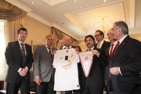 Şahin, Almanya’dan gelen heyete yöresel el dokumalardan ve çini işlemeli bir tabak hediye ederken, Mainz Bingen Kaymakamı ve Rhein-Nahe-Hünsrück Bölge Sözcüsü Claus Schink de Vali Fatih Şahin’e Mainz 05 futbol takımının formasını hediye etti. CİHAN