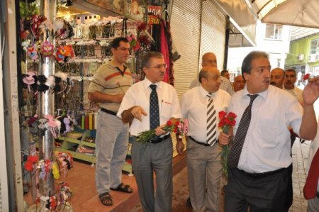 Esnafın bayramı kutlayan mülki amirler hayırlı kazançlar dileyerek esnafa karanfil takdim ettiler. CİHAN