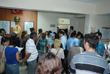 Türkiye’nin farklı bölgelerinden gelen öğretmenler, sabahın erken saatlerinde Milli Eğitim Müdürlüğü önünde sıraya girdi. Atama şubesinin önündeki kuyruk hükümet konağı önüne uzandı. Öğretmenler, mesainin başlamasıyla birlikte işlemlerini yapmaya başladı.
