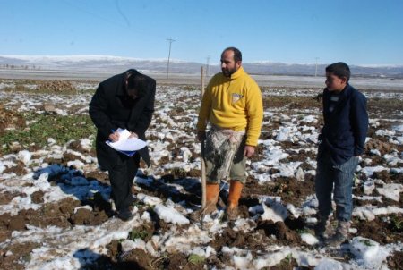 Muş’ta 16 bin 255 dekar alanda 2 bin 247 çiftçiye ait şeker pancarı tarlada kaldı. İl Gıda Tarım ve Hayvancılık Müdürü Murat Yıldız ise çiftçinin mağdur olmaması için çalışma başlattıklarını kaydetti. Gıda Tarım ve Hayvancılık İl Müdürü Murat Yıldız, bu yıl kışın erken gelmesinden dolayı şeker pancarı eken çiftçilerin olumsuz etkilendiklerini belirterek pancar çiftçisinin mağdur olmaması için Şeker Fabrikası ile birlikte çalışma başlattıklarını vurguladı. Kar yağışından 16 bin 255 dekar alanda pancar ekimi yapan toplam 2 bin 247 çiftçinin etkilendiğini ifade eden Murat Yıldız şöyle konuştu: "Biz İl Gıda Tarım ve Hayvancılık Müdürlüğü olarak bu konuda hasar tespit çalışmalarımıza devam ediyoruz. Şeker Fabrikası Müdürlüğü ile ortaklaşa yaptığımız hasar tespit çalışmalarından Malazgirt’te 390, Bulanıkta 604 ve merkezde bin 253 olmak üzere toplam 2 bin 247 pancar çiftçisinin 16 bin 255 dekar alanda ekim yaptığı pancar kar altında kaldığını tespit ettik."