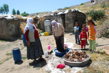 Murat Nehri kenarında yün yıkayarak düğün hazırlığına başladıklarını belirten düğün sahipleri, yaz mevsiminin gelmesi ile birlikte düğünlerin arttığını ve birçok vatandaşın düğün hazırlığı için yün yıkamaya başladıklarını belirtti.