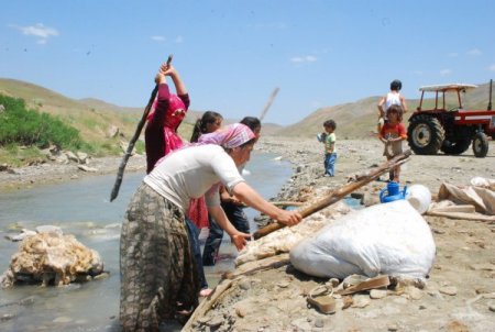 Muş’ta Ramazan ayı öncesi artan düğünler nedeni ile dere kenarları yün yıkayan aileler ile doldu.