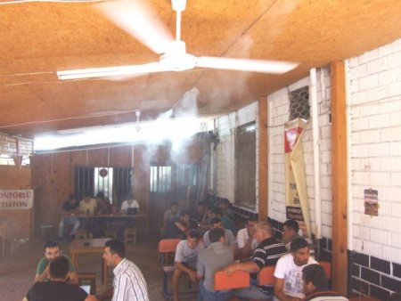 Müşterilerinin talebi üzerine sistemimizi sürekli açık tuttuklarını anlatan Yavuz, “Sistem suyu buhar haline getirerek fıskiye yardımıyla püskürtüyor. Kahvehanenin ahşap tavanına kalem kalınlığında borular döşedik. Pompa sayesinde bu borulardan geçen su borularda bulunan fıskiyelerden su, buhar olarak çıkıyor ve müşterilerimizi rahatsız etmeyecek şekilde bir serinlik veriyor. Açık havayı serinletmesi nedeni ile müşterilerimiz yaz aylarında dahi açık alanda serin serin oturmanın tadını çıkartıyorlar. Sistem bize 8 bin liraya mal oldu. Ayrıca ortamda sinek olmuyor. Müşterilerim sinek kovalamak zorunda da kalmıyor.” dedi.