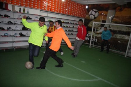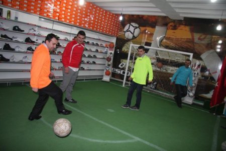 Ayakkabı mağazası sahibi, müşterilerinin satın alacakları spor ayakkabıları deneyebilmeleri amacıyla iş yerinin zemin katına halı saha yaptırdı. Şimdilerde bu halı saha esnafın stresini alıyor. Esnaf Kemal Erkalaycı’nın iş yerinin zemin katına kurduğu mini futbol sahasında esnaf kendi arasında futbol maçı düzenliyor. Esnafların kendi aralarında kurdukları takımlar kıyasıya mücadele ediyor.