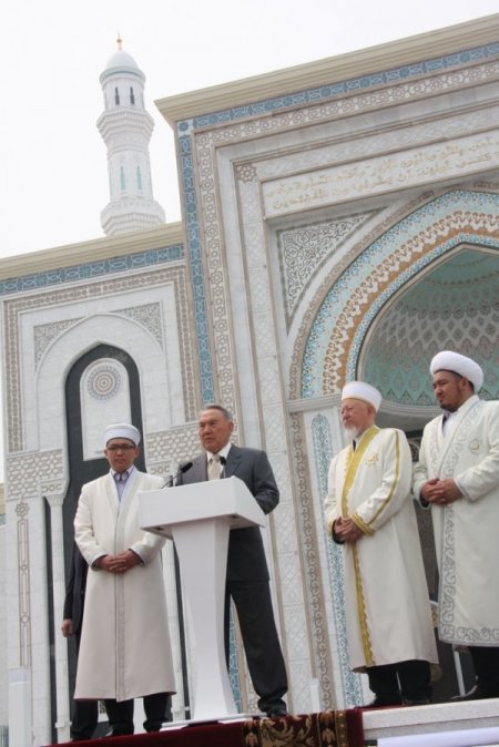 İşadamları ve halkın desteğiyle son derece kullanışlı ve modern bir cami inşa edildiğini söyleyen Nazarbayev, Kazakistan’da yaşayan halkların yüzde 70’nin Müslüman olduğunu ve son zamanlarda camiye giden gençlerin sayısında büyük artış olduğunu belirtti. İslam’ın barış ve huzur dini olduğunu hatırlatan Nazarbayev, ülke olarak ta barıştan yana politika izlediklerini ifade etti. Nazarbayev, ‘beşikten mezara kadar ilim öğreniniz’ hadisini hatırlatarak İslam’ın her zaman ilim ve bilime yakın olduğunu dile getirdi.