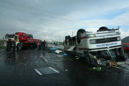 Nevşehir’in Acıgöl ilçesine bağlı Karacaören köyü yakınlarında, yola aniden çıkan inek sürüsü yüzünden direksiyon hakimiyetini yitiren belediye otobüsü devrildi. Kazada 31 kişi yaralanırken, 1 kişi olay yerinde hayatını kaybetti.