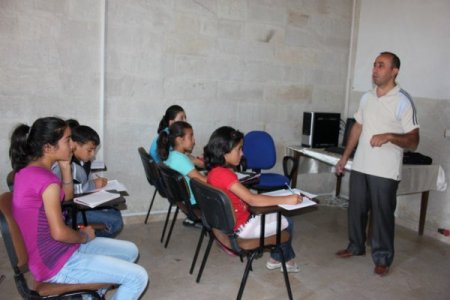 Ağustos ayının sonlarında tamamlanması planlanan İngilizce eğitiminden yaklaşık 60'a yakın öğrenci yararlanıyor.