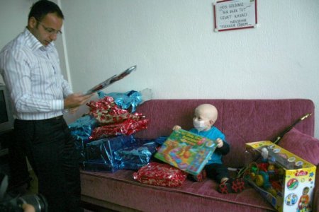 Ankara’dan ikamet eden dernek gönüllüsü Murat Gündüz tarafından getirilen akülü araba ve çok çeşitli hediyeler, minik Cevat’ın odasına konularak tek tek açıldı. Hediyelerin açılması anında çok sevinen Cevat, özellikle Caillou setleri ve kılıça ilgi gösterdi. Elindeki kılıçla sevincini asker selamı vererek ve gülümseyerek belli eden minik Cevat, büyük kutudan hayalindeki akülü araba çıkınca yerinde duramadı. Arabayı kurmaya çalışan babası İhsan ve dernek gönülüsü Murat Gündüz’e talimatlar yağdıran minik Cevat, arabaya oturunca önce tanımaya çalıştı. Sonrasında ise gaza basarak evlerinin koridorunda turlar atmaya başladı.