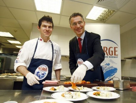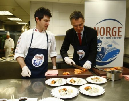 Norveç Başbakanı Jens Stoltenberg, Çırağan Sarayı'nın Enderun Mutfağı'nda, Norveç'in geleneksel yemeklerinden biri olan ''Sashimi'' yaptı. Önlüğünü giyip eldivenlerini takan Stoltenberg’e ''Sashimi'' yapımında sarayın Norveçli şefi ve Norveç Mutfak Akademisi Yönetici Şefi Jostein Medhus yardım etti. Daha önceden hazırlanan somon balığını önce ince ince dilimleyen Stoltenberg, daha sonra kestiği parçaları suşili tabaklara yerleştirdi.