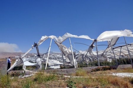 Şiddetli rüzgar, ilçeye bağlı Kantar Köyü'nde bulunan Mehmet Selim Al'a ait 6 dönüm üzerine kurulu salatalık, kavun ve karpuz serasını kullanılamaz hale getirdi. Gece saatlerinde başlayan şiddetli rüzgarın fırtınaya dönüştüğünü kaydeden Al, fırtınanın serayı yerle bir ettiğini, içindeki meyve ve sebzenin de büyük zarar gördüğünü belirtti.