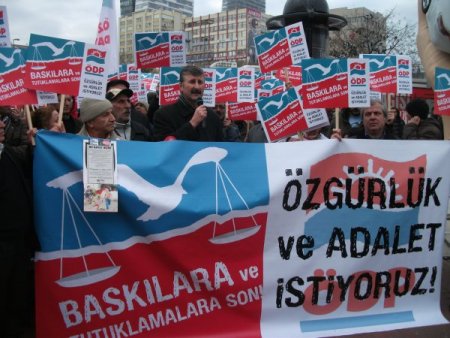 Özgürlük ve Demokrasi Partisi (ÖDP) üyeleri ‘Özgürlük ve Adalet’ sloganıyla Mecidiyeköy’de eylem yaptı. Genel Başkan Alper Taş’ın basın açıklaması yaptığı eylem sonunda partililer ellerinde ‘‘Baskılara ve tutuklamalara son. Özgürlük ve adalet istiyoruz’ yazılı dövizlerle tek sıra halinde Taksim’e yürüdü.