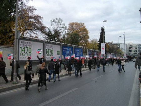 ‘Karanlığa karşı özgür demokratik Türkiye’ , ‘Susma sustukça sıra sana gelecek’ şeklinde sloganlar atan grup basın açıklamasının ardından ellerindeki dövizlerle beraber tek sıra halinde Taksim’e doğru yürüyüşe geçti.