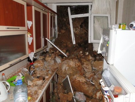 Trabzon’un Of ilçesine bağlı Cumapazarı beldesi Cumhuriyet Caddesi'nde, Hasan Saral'a ait üç katlı betonarme binanın arka kısmında, gece yarısı meydana gelen heyelan sonucu bina kullanılamaz hale geldi.