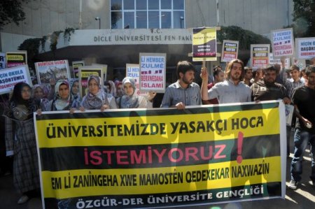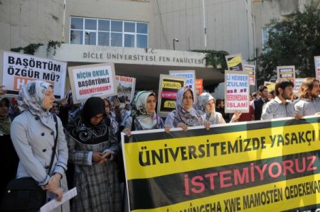 Özgür-Der Üniversite Gençliği, Dicle Üniversitesi Fen-Edebiyat Fakültesinde sürdürülen başörtü yasağını protesto etti. Fen-Edebiyat Fakültesi Matematik ve Biyoloji bölümlerinde sürdürülen başörtüsü yasağını protesto etmek için Özgür-Der’e bağlı üniversite öğrencileri toplandı.