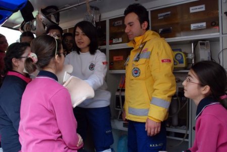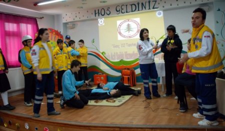 Bolu’da 112 Acil Servis ekipleri, vakalarda yapılacak müdahalelerle ilgili öğrencileri bilgilendiriyor. Ekipler, gittikleri okullardaki öğrencilere gruplar halinde, 112 Acil Servisi’ni anlatıyor, vakalardaki müdahaleleri tatbiki olarak gösteriyor. Ekipler, Özel Altın Lale Anaokulu ve Özel Melih İlköğretim Okulu öğrencilerini de bilgilendirdi. Bolu İl Sağlık Müdürü Dursun Koç, 112 Acil Servisi görevlilerinin gittikleri okullarda ambulansı tanıttıktan sonra acil vakalar noktasında bilgiler verdiğini söyledi. Koç, il merkezi ve ilçelerdeki bütün okullarda 112 Acil Servisi hakkında bilgiler vereceklerini belirterek, şunları kaydetti: "Bilgilendirmeler 2 hafta önce başladı ve yılsonuna kadar tamamlanacak. İlk önce öğrencilerden başladık. Çünkü genç nesil her şeyin farkında, teknolojiyi vatandaşlardan daha iyi kullanıyor. Zihinleri açık, verilen bilgileri hemen alıyorlar. Bu çocukları geleceğe hazırlamak gerekiyor." Koç, okulları bitirdikten sonra vatandaşları da bilgilendireceklerini dile getirdi. Koç, bilgilendirmeler bittikten sonra geri dönüşümü kontrol etmek için anket çalışması yapacaklarını aktardı. Koç, ayrıca, personellerini de eğittiklerine vurgu yaparak, "Kendi içerimizdeki personelimizin eğitimleri de devam ediyor. Sürekli bir eğitim ve pratik uygulama var. Geçen sene uygulanan bazı şeyler bu sene değişmiş oluyor. Bunun önüne geçmek için eğitimlerimiz sürüyor. Personelimizin kazandığı eğitimleri vatandaşa aktarmaya çalışıyoruz." diye konuştu. CİHAN