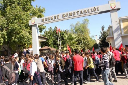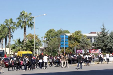 Bir süre Merkez Komutanlığının önünde eylemlerini sürdüren öğrenciler, daha sonra slogan atarak, uzaklaştı.