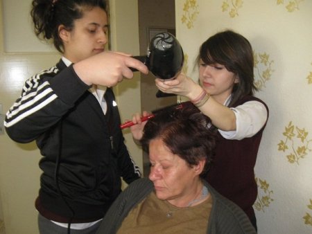 Kırıkkale Kız Meslek Lisesi güzellik ve saç bakımı öğrencileri, Aşağımahmutlar Mahallesi’nde bulunan Özel Değirmenci Bakın Merkezi’nde kalan yaşlı kadınlara ücretsiz saç bakımı yaptı.