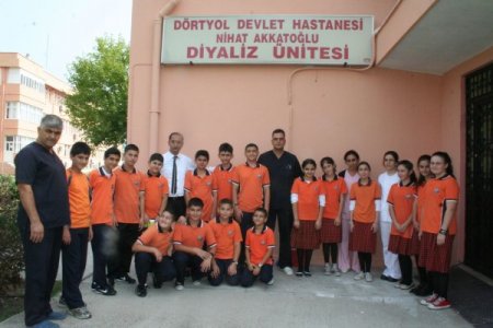 Hatay’ın Dörtyol ilçesinde eğitim öğretim faaliyetlerini sürdüren Özel Gümüş ilköğretim okulu öğrencileri Dörtyol Devlet Hastanesi Diyaliz Ünitesi'ni ziyaret etti.