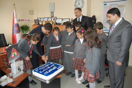 Türk Polis Teşkilatı’nın 166. kuruluş yıldönümünü kutlamak için Bozüyük Emniyet Müdürlüğü’nü ziyaret eden öğrenciler, polislere kendi elleriyle pasta ikramında bulundu. Orhangazi Koleji öğrencileri, aynı zamanda Emniyet Müdürü Okumuş’a Ulusal Çevre Proje Yarışması (İNEPO)’nda kendilerine altın madalya kazandıran projelerini anlattı.