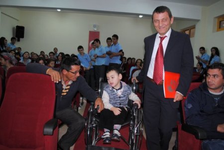 Manavgat'ta Şelale Lisesi, İlçe Milli Eğitim Müdürlüğü ve Manavgat Turizm Altyapı Birliği (MATAB)'nin Sosyal Sorumluluk Projesi kapsamında başlattığı kampanya yürüme engellilere umut olmaya devam ediyor. Kampanya çerçevesinde Şelale Lisesi tekerlekli sandalye ödül programı düzenledi. Okulun konferans salonunda yapılan programa İlçe Milli Eğitim Müdürü Faruk Karcı, Evrenseki Beldesi Belediyesi ve MATAB Başkanı Recep Barut, AK Parti Antalya İl Genel Meclisi üyesi Ömer Şahin, Okul Müdürü Ömer Ünlü ve engelli aileleri katıldı. Okul Müdürü Ömer Ünlü, 1 ve 2'nci etap kampanya çerçevesinde 29 engelliye tekerlekli sandalye hediye etmenin sevinci içinde olduklarını söyledi. Kampanyalarının devam ettiğini belirten Ünlü, üçüncü etapta ise engellilere akülü araç vereceklerini kaydetti. Ünlü, "29 yürüme engelli kardeşimizi tekerlekli sandalyeye kavuşturduğumuz için çok mutluyuz. Birinci etapta 10, ikinci etapta ise 19 tekerlekli sandalye armağan ettik. Hediye ettiğimiz tekerlekli sandalyelerin engelli kardeşlerimizin engellerini aşmada yardımcı olacaktır. Kampanyamız devam ediyor. Üçüncü etapta yürüme engelli kardeşlerimize akülü sandalye hediye edeceğiz. Kampanya da emeği geçen herkese can-ı gönülden teşekkür ediyorum." diye konuştu.