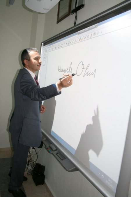 Burada konuşan Gün, eğitim öğretimde teknolojinin vazgeçilmez olduğunu söyledi. Kınık’ta eğitim alanındaki bu bir yeniliğin kendisini memnun ettiğini belirten Kaymakam Gün, yarının aydınlık geleceği olan gençlerin yetişmesinde teknolojinin öneminden bahsetti. Füzyon Dershanesi Müdürü Turgay Tunç ise eğitime kazandırdıkları iki sınıf hakkında katılımcılara bilgi verdi. Dershane öğretmenlerinin, aralarında topladıkları para ve ilçedeki hayırseverlerin katkılarıyla aldıkları akıllı tahta ve sanal kütüphanenin görerek ve dokunarak, aynı zamanda teknolojik imkânlar eşliğinde çalışma ortamı sağladığını söyledi. Tunç, “Akıllı tahtanın en büyük faydası, görsel ve eğlenceli olması. Çağın son teknolojisi olan ürünle daha etkin bir eğitim öğretim amaçlıyoruz.” dedi. Konuşmaların ardında Kaymakam Gün, akıllı tahtada deney yaptı ve yazı yazdı. CİHAN