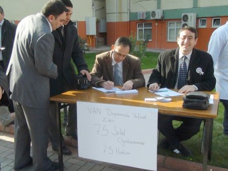 Burdur Eğitim Gönüllüleri Derneği'ne mensup öğretmenler, Van’da şehit olan öğretmenler için hatim dağıttı. Öğretmenler Günü nedeniyle Mehmet Akif Ersoy Üniversitesi bahçesinde yapılan etkinliğe öğretmenler büyük ilgi gösterdi.