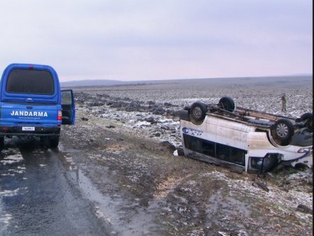 Siverek’ten taşımalı eğitim yapılan Karabahçe İlköğretim Okulu’na giden öğretmenleri taşıyan Cafer Özgenç (31) idaresindeki servis aracı, kar nedeniyle kayganlaşan yolda sürücünün direksiyon hâkimiyeti kaybetmesi sonucu devrildi.