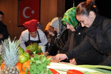 Bingöl'de düzenlenen yemek yarışmasında kadınlar hünerlerini sergiledi. Samanyolu Televizyonu'nda yayınlanan Yeşil Elma programının sevilen yapımcısı ve sunucusu aşçı Oktay Aymelek'in yönettiği yarışmaya kadınlar büyük ilgi gösterdi. Bahar Kültür Eğitim Yardımlaşma ve Dayanışma Derneği tarafından, Bingöl Belediyesi Kültür Merkezi konferans salonunda düzenlenen programda 17 yemeğin yarıştı. Oktay Usta yarışmaya katılan kadınlara portakal kabuğundan gül, salatalıktan lale, pırasadan palmiye ağacı gibi küçük yarışmalar yaptırdı. Zaman zaman yaptığı esprilerle de salondakileri güldüren Oktay Usta programın yoğun ilgi görmesinden duyduğu memnuniyeti dile getirdi. Yarışma sonunda Oktay Usta için özel olarak üretilen 10 tane mutfak önlüğü açık artırma usulüyle satışa sunuldu.