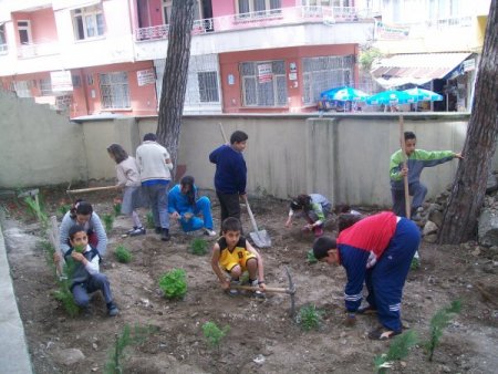 Okul Müdürü Mehmet Tümkaya, okul bünyesinde açılan hafif düzeyde zihinsel engeli öğrencilerin özel eğitim sınıflarında, eğitim ve öğretimin sürdüğünü belirterek, “Bu öğrencilerimizin daha fazla sorumluluk almalarını ve ilgilerini geliştirmek amacıyla hocalarımızla birlikte okul bahçemizin bir bölümünü uygulama bahçesi olarak tahsis ettik. Öğrencilerimizle birlikte bu alanı temizleyip düzenledik. Çeşitli fide ve fidan temin ederek zihinsel engelli öğrencilerin bu alanda bu fidan ve fideleri dikmelerini sağladık. Özel eğitim sınıfı öğrencileri öğretmenleri kontrolünde Özel Eğitim Uygulama Bahçesi’ne dikimini yaptıkları bu fide ve fidanların bakım, sulama ve temizliklerini büyük bir sevgi ve istekle sürdürüyorlar.” dedi.