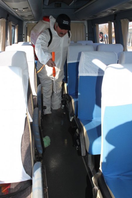 Yılmaz, okul zamanında öğrencilerin yoğun olarak kullandığı toplu taşıma araçlarını, insan sağlığına zarar vermeyen ilaçlarla gribal virüslere karşı dezenfekte ettiklerini ifade etti.