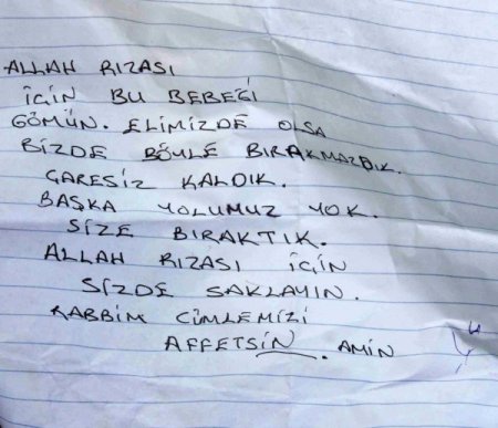 Mersin’de bir caminin şadırvanında beze sarıldıktan sonra poşete konulmuş yeni doğmuş bebek cesedi bulundu. Yanında bir de not bulunan bebek cesedi incelemenin ardından otopsi için Mersin Devlet Hastanesi morguna kaldırıldı.