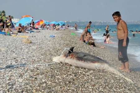 Antalya’da denizde telef olan yunus balığı dünyaca ünlü Konyaatlı Sahili’ne vurdu.